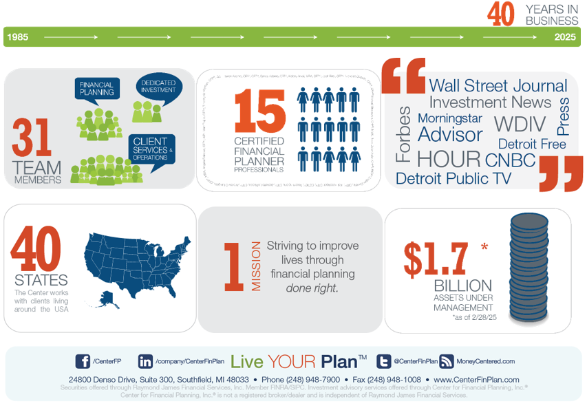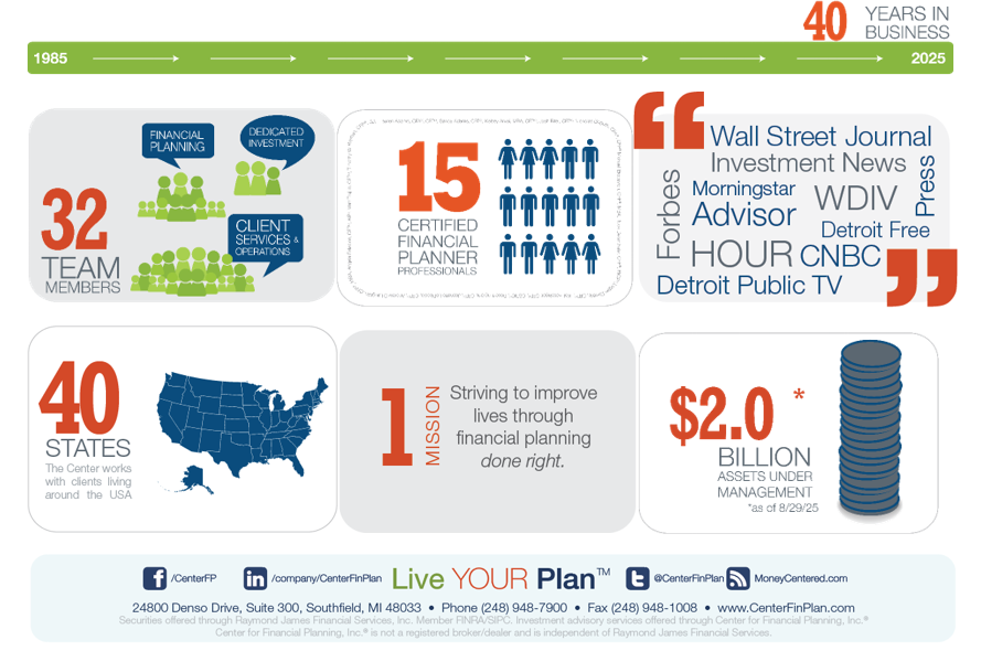 We invite you to experience the heartfelt and personable nature of The Center by giving us a call, 248.948.7900, or sending us an email, Contact@CenterFinPlan.com!